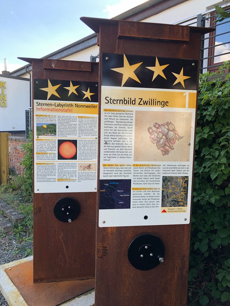 Diese und viele weitere Informationen zu 16 ausgewählten Sternen mit den dazugehörigen Sternbildern findet man in Nonnweiler. Über die gesamte Ortslage verteilt sind 16 Stationen aufgebaut, die je eine Informationstafel zum dem entsprechenden Stern und eine weitere zum zugehörigen Sternbild enthalten. Eine angefügte Sternkarte dient dem Auffinden des Sterns zur besten Abendsichtbarkeit. Über eine Kurbel mit Dynamo können die Tafeln beleuchtet werden. Außerdem kann man sich den Text zum Stern und zur mythologischen Geschichte des Sternbilds anhören. Alle Stationen sind barrierefrei erreichbar.