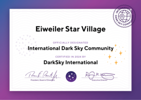 Der Ortsteil Eiweiler der Gemeinde Nohfelden wurde von der DarkSky International als International Dark Sky Community zertifiziert. Die Auszeichnung von Eiweiler als Sternendorf ist ein bedeutender Schritt für das Projekt Sankt Wendeler SternenLand, welches vor Jahren zur Reduzierung der Lichtverschmutzung im Landkreis Sankt Wendel gegründet wurde. Ziel des Projektes war von Anfang an die Schaffung eines Schutzgebietes, bei gleichzeitiger Verbesserung der Lebensbedingungen für Natur und Mensch sowie der Schaffung optimaler Bedingungen für den Astro-Tourismus in der Region.